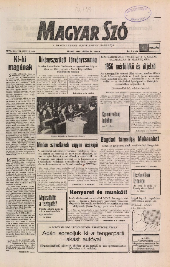 Magyar Szó, 47. évf. 1990. október 24. 293. sz. 1–20. oldal