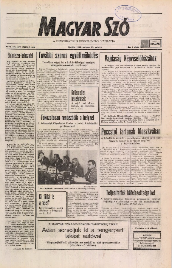 Magyar Szó, 47. évf. 1990. október 26. 295. sz. 1–20. oldal