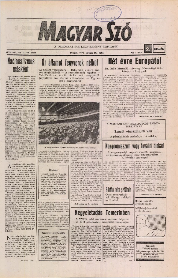Magyar Szó, 47. évf. 1990. október 29. 298. sz. 1–20. oldal