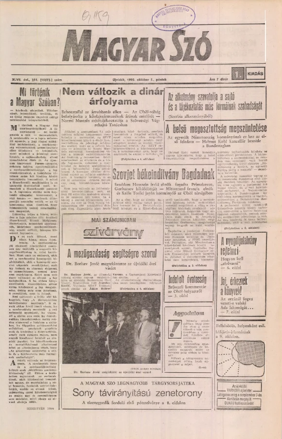 Magyar Szó, 47. évf. 1990. október 5. 274. sz. 1–16. oldal