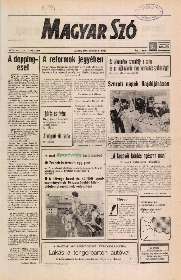 Magyar Szó, 47. évf. 1990. október 8. 277. sz. 1–20. oldal