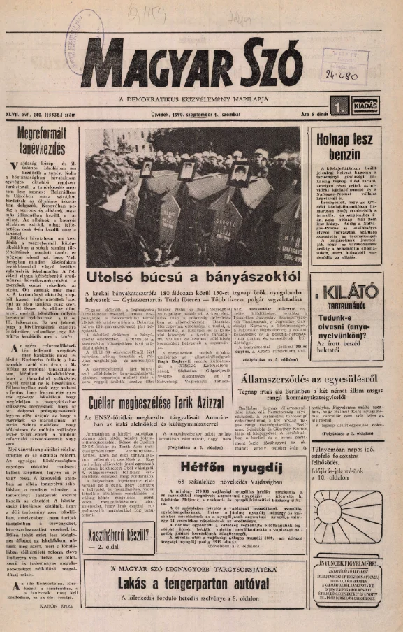 Magyar Szó, 47. évf. 1990. szeptember 1. 240. sz. 1–20. oldal