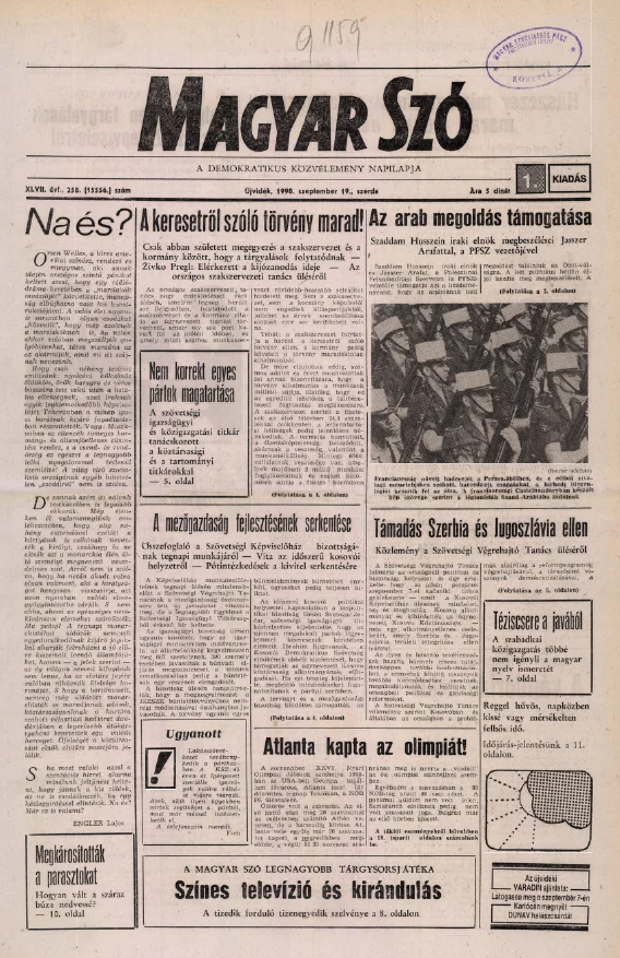 Magyar Szó, 47. évf. 1990. szeptember 19. 258. sz. 1–20. oldal