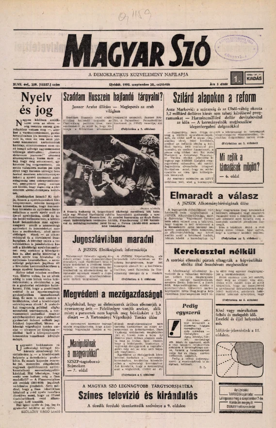 Magyar Szó, 47. évf. 1990. szeptember 20. 259. sz. 1–16. oldal