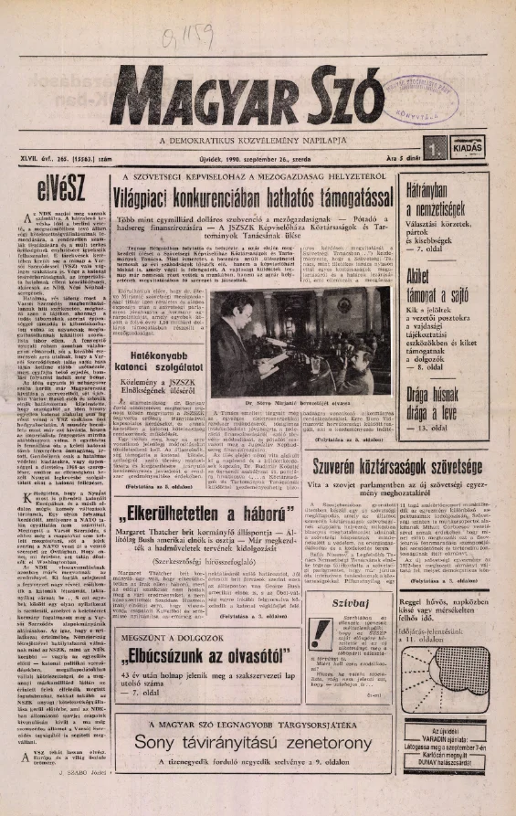 Magyar Szó, 47. évf. 1990. szeptember 26. 265. sz. 1–20. oldal
