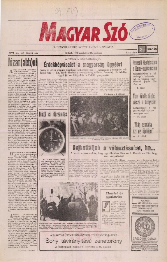 Magyar Szó, 47. évf. 1990. szeptember 30. 269. sz. 1–32. oldal