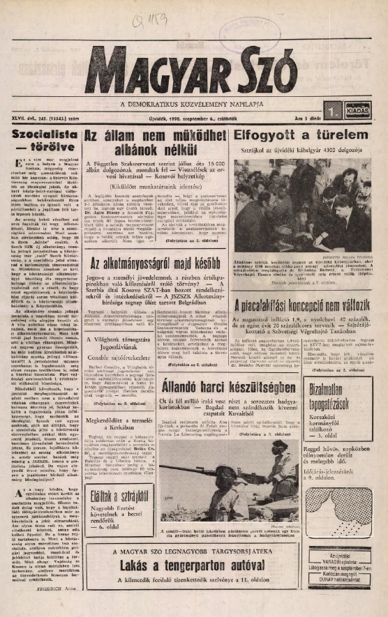 Magyar Szó, 47. évf. 1990. szeptember 6. 245. sz. 1–16. oldal