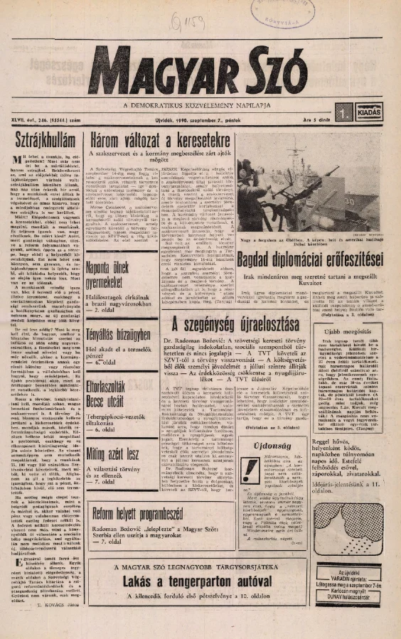 Magyar Szó, 47. évf. 1990. szeptember 7. 246. sz. 1–20. oldal