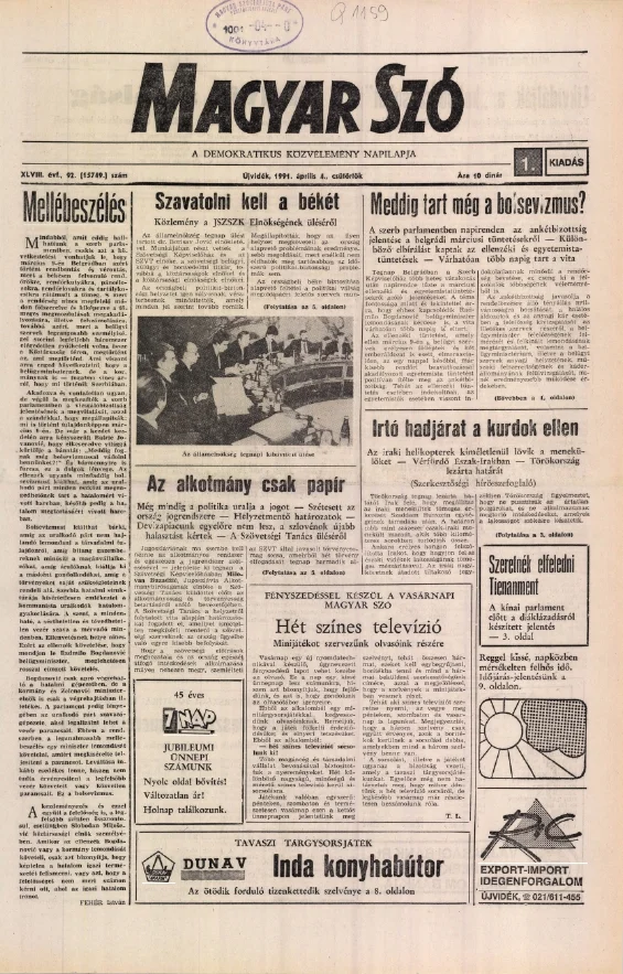Magyar Szó, 48. évf. 1991. április 4. 92. sz. 1–16. oldal