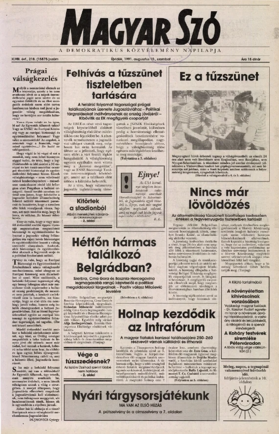 Magyar Szó, 48. évf. 1991. augusztus 10. 218. sz. 1–20. oldal