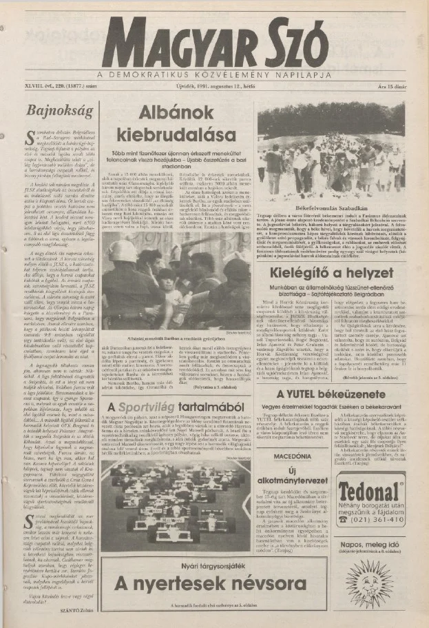 Magyar Szó, 48. évf. 1991. augusztus 12. 220. sz. 1–20. oldal