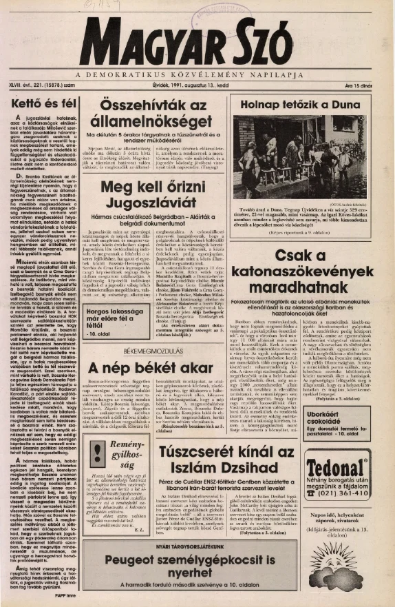 Magyar Szó, 48. évf. 1991. augusztus 13. 221. sz. 1–20. oldal