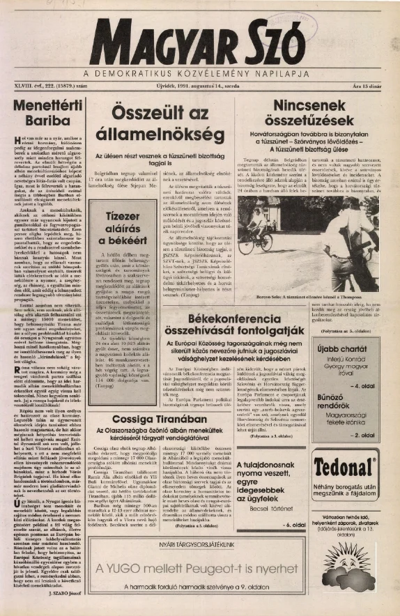 Magyar Szó, 48. évf. 1991. augusztus 14. 222. sz. 1–16. oldal