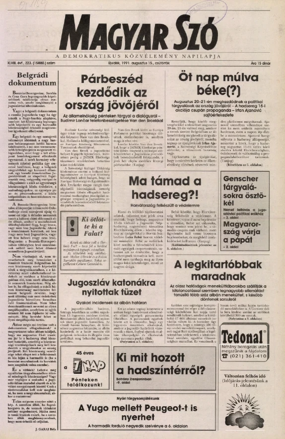 Magyar Szó, 48. évf. 1991. augusztus 15. 223. sz. 1–16. oldal