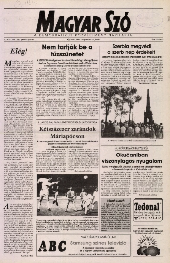 Magyar Szó, 48. évf. 1991. augusztus 19. 227. sz. 1–20. oldal