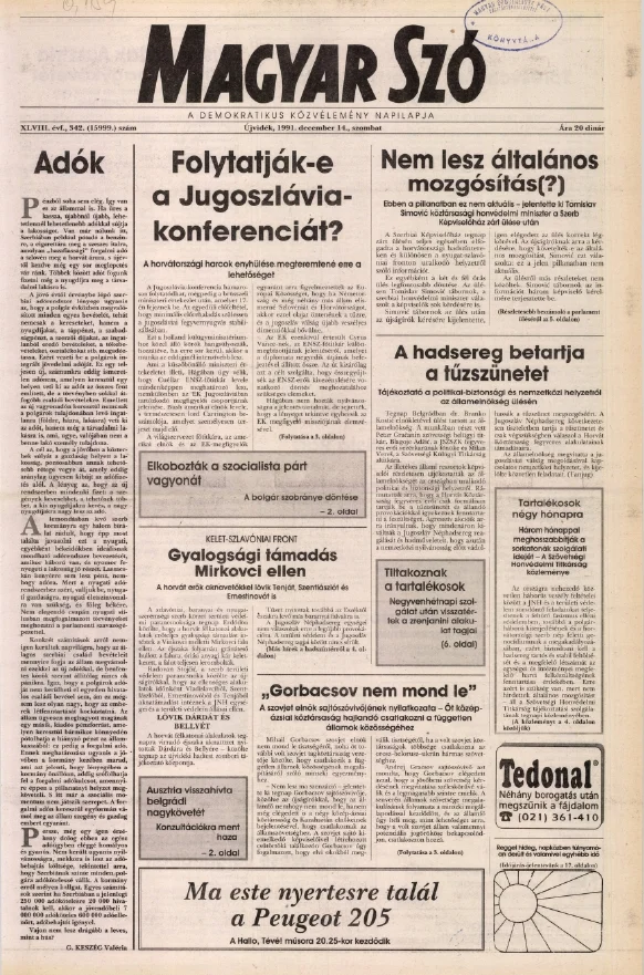 Magyar Szó, 48. évf. 1991. december 14. 341. sz. 1–20. oldal