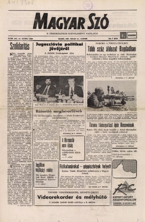 Magyar Szó, 48. évf. 1991. február 14. 43. sz. 1–16. oldal