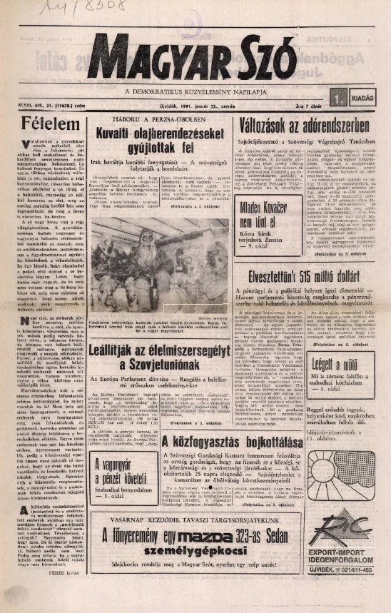 Magyar Szó, 48. évf. 1991. január 23. 21. sz. 1–20. oldal