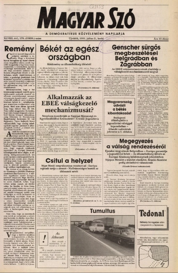 Magyar Szó, 48. évf. 1991. július 2. 179. sz. 1–20. oldal