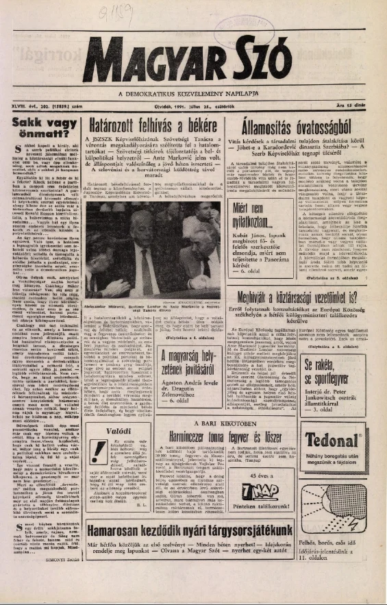 Magyar Szó, 48. évf. 1991. július 25. 202. sz. 1–16. oldal