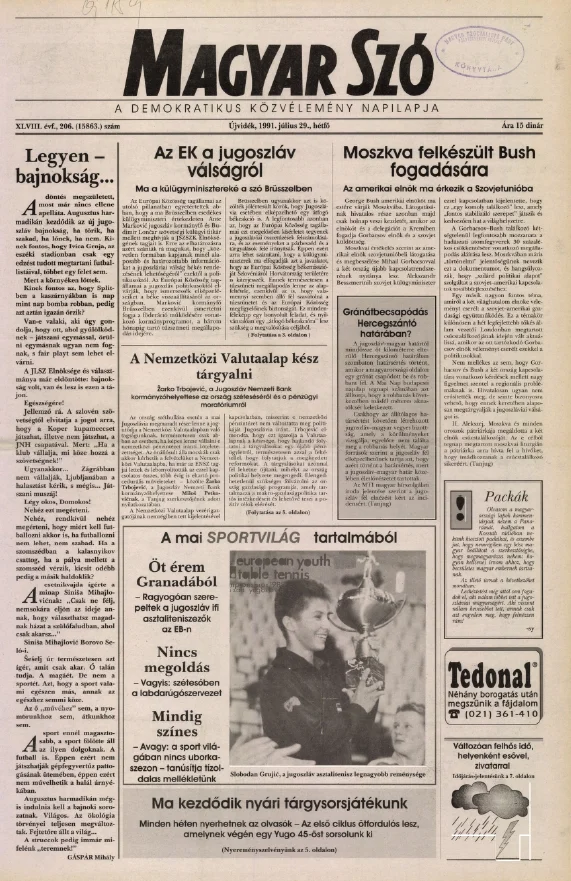 Magyar Szó, 48. évf. 1991. július 29. 206. sz. 1–20. oldal