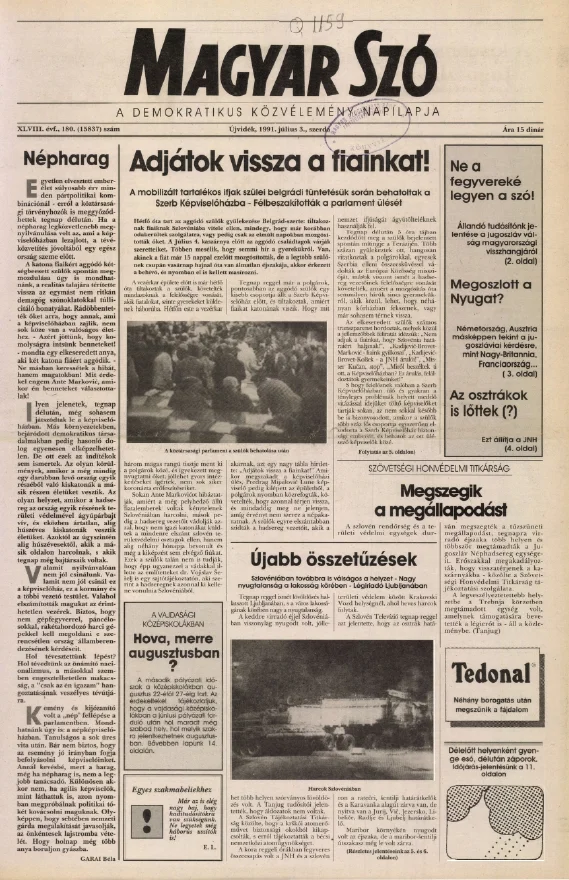 Magyar Szó, 48. évf. 1991. július 3. 180. sz. 1–20. oldal