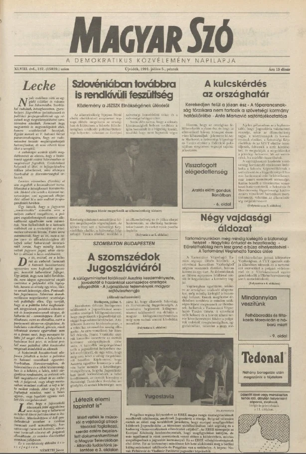 Magyar Szó, 48. évf. 1991. július 5. 182. sz. 1–20. oldal