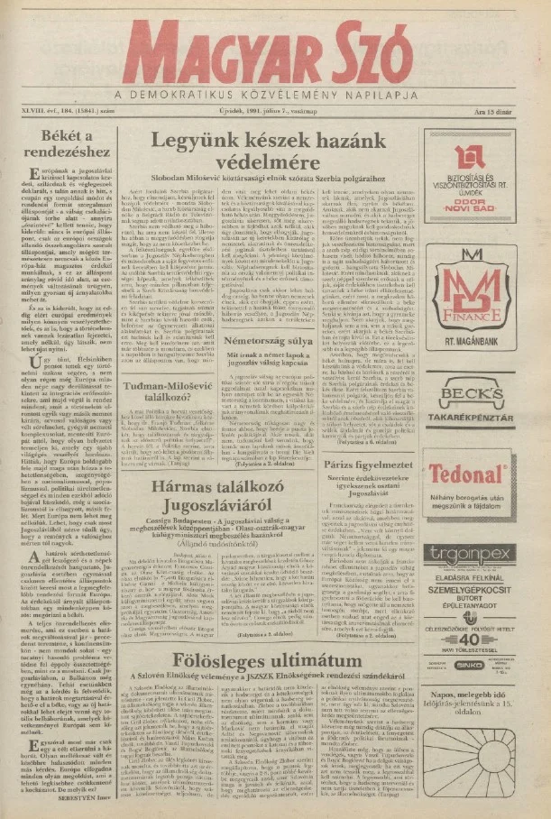 Magyar Szó, 48. évf. 1991. július 7. 184. sz. 1–28. oldal