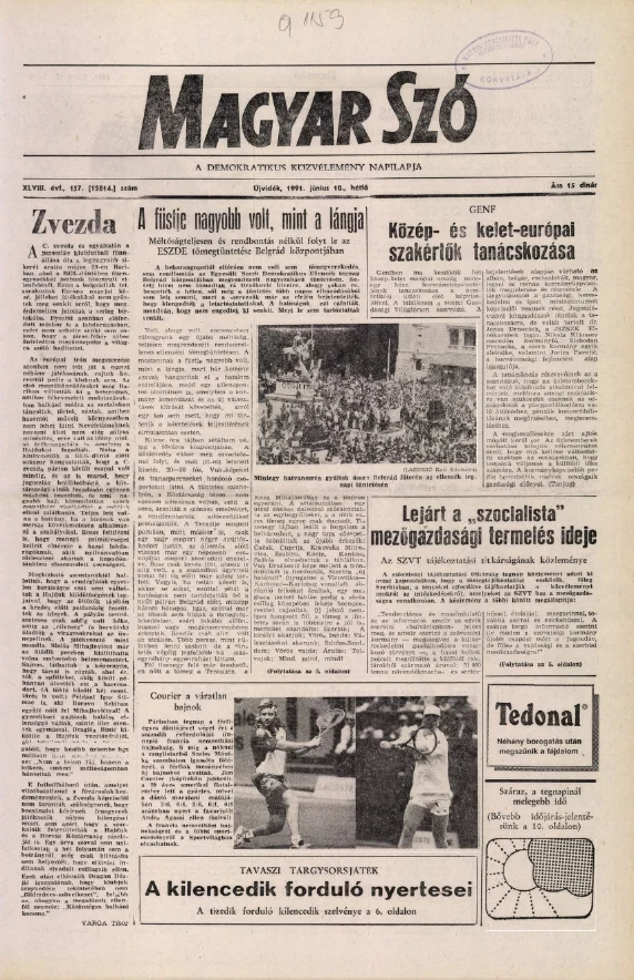 Magyar Szó, 48. évf. 1991. június 10. 157. sz. 1–20. oldal