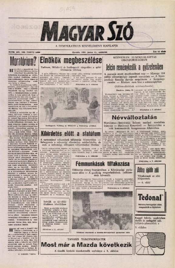 Magyar Szó, 48. évf. 1991. június 13. 160. sz. 1–16. oldal