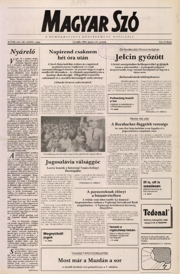 Magyar Szó, 48. évf. 1991. június 14. 161. sz. 1–20. oldal