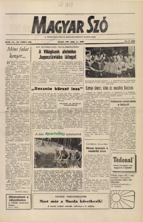 Magyar Szó, 48. évf. 1991. június 3. 150. sz. 1–20. oldal