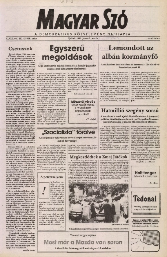 Magyar Szó, 48. évf. 1991. június 5. 152. sz. 1–20. oldal