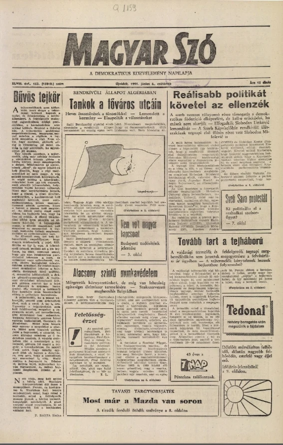 Magyar Szó, 48. évf. 1991. június 6. 153. sz. 1–16. oldal