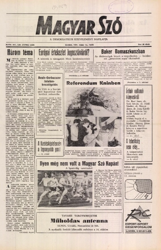 Magyar Szó, 48. évf. 1991. május 13. 130. sz. 1–24. oldal