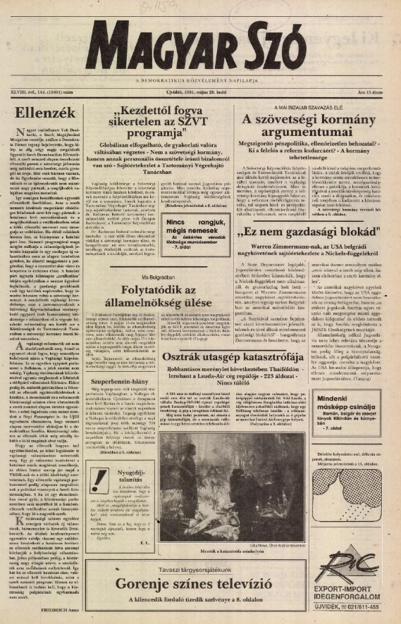 Magyar Szó, 48. évf. 1991. május 28. 144. sz. 1–20. oldal