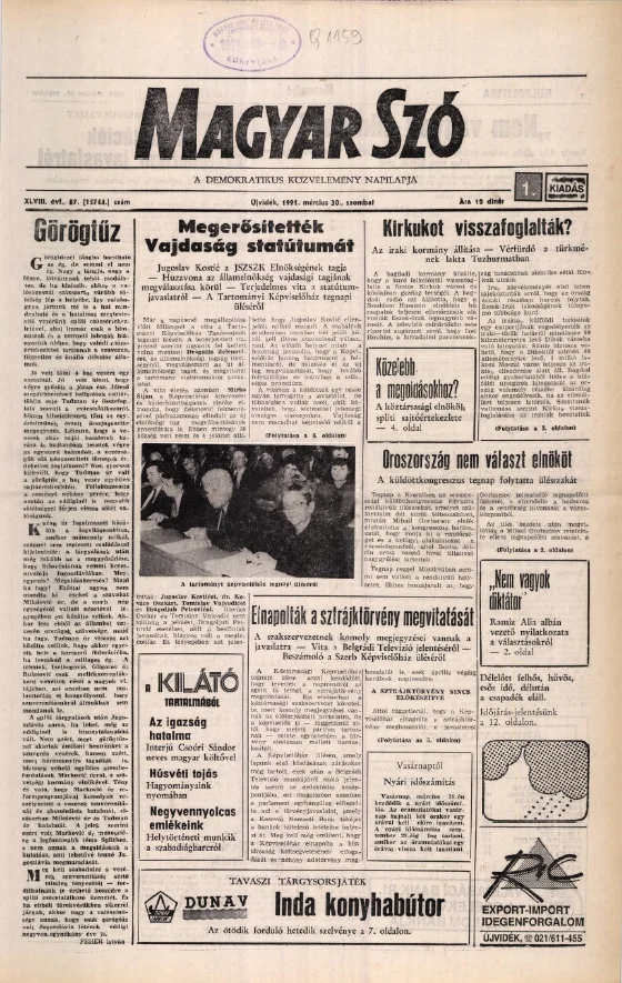 Magyar Szó, 48. évf. 1991. március 30. 87. sz. 1–24. oldal