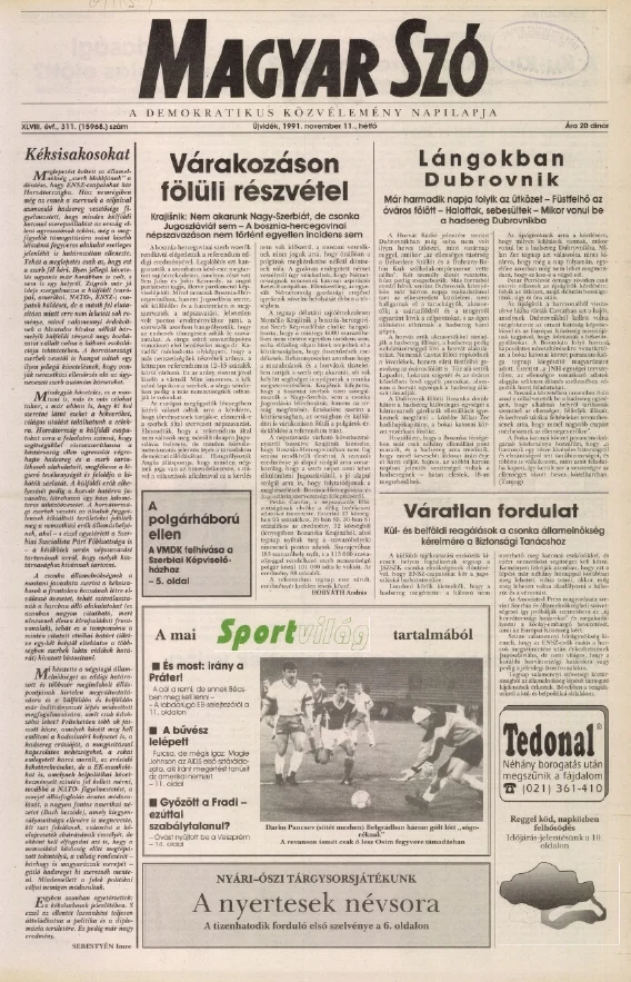 Magyar Szó, 48. évf. 1991. november 11. 311. sz. 1–20. oldal