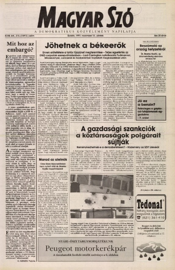 Magyar Szó, 48. évf. 1991. november 15. 315. sz. 1–20. oldal
