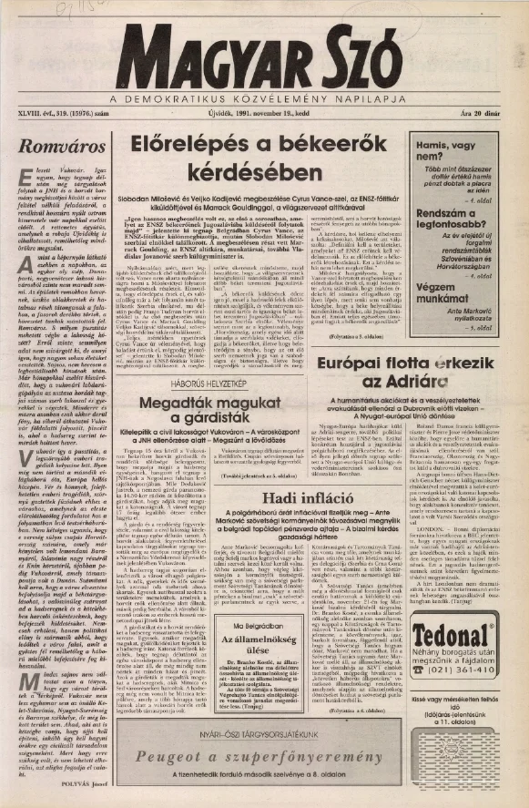 Magyar Szó, 48. évf. 1991. november 19. 319. sz. 1–20. oldal