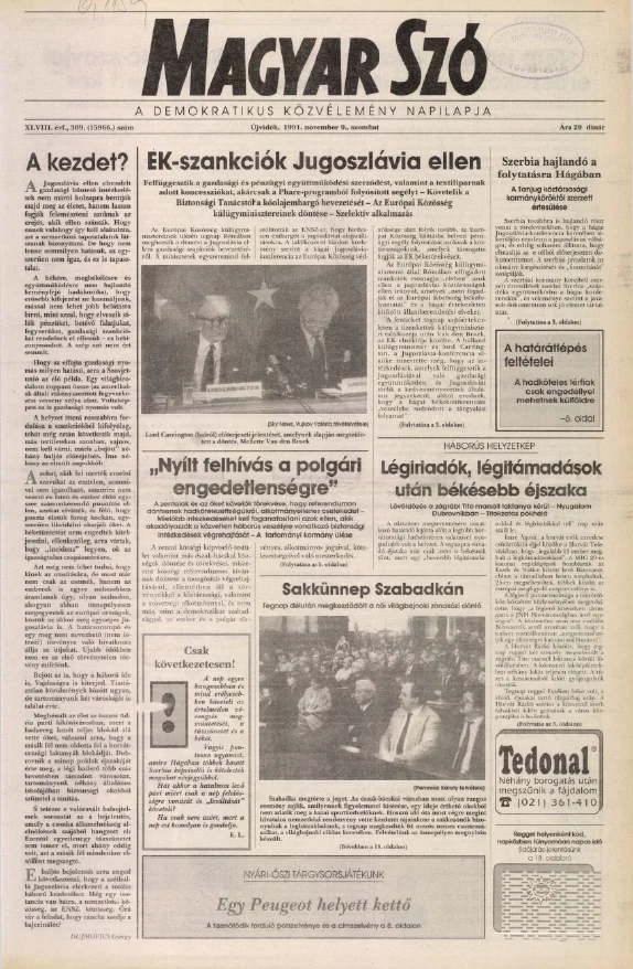 Magyar Szó, 48. évf. 1991. november 9. 309. sz. 1–20. oldal