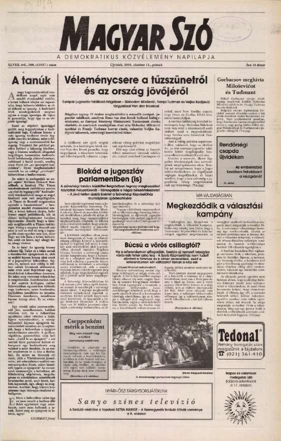 Magyar Szó, 48. évf. 1991. október 11. 280. sz. 1–20. oldal