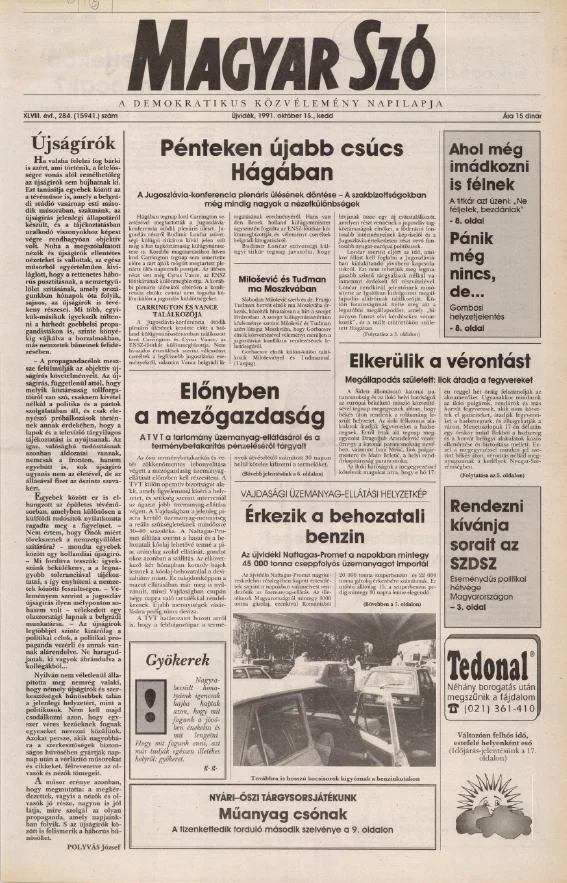 Magyar Szó, 48. évf. 1991. október 15. 284. sz. 1–20. oldal