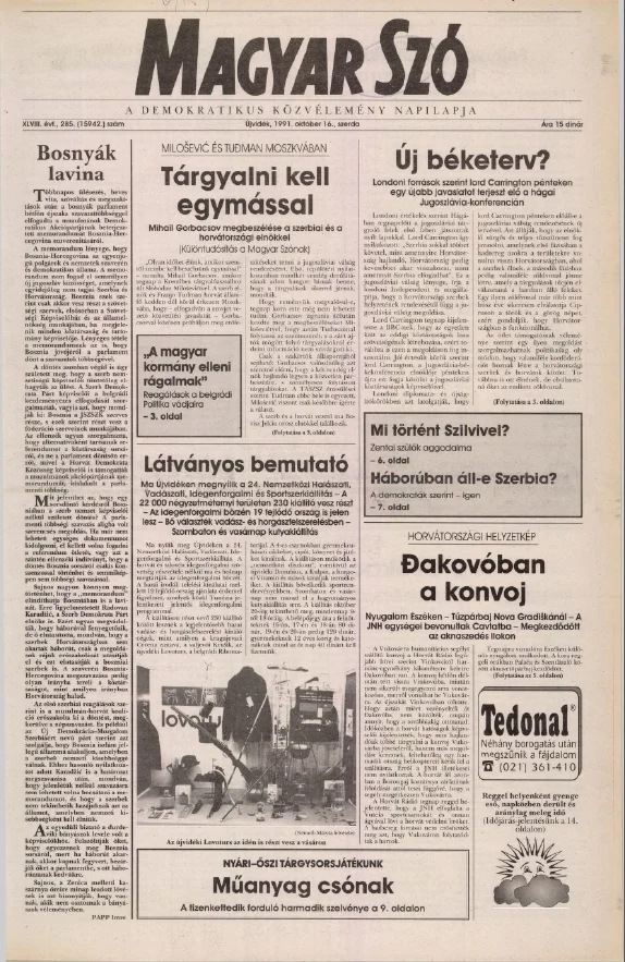 Magyar Szó, 48. évf. 1991. október 16. 285. sz. 1–16. oldal