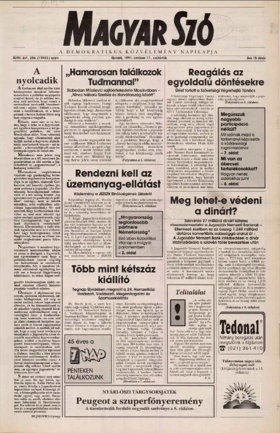 Magyar Szó, 48. évf. 1991. október 17. 286. sz. 1–16. oldal