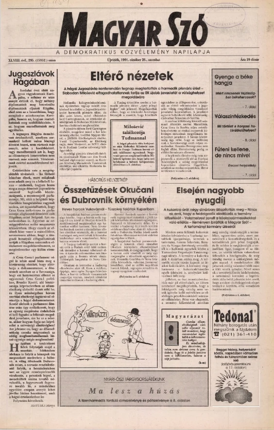 Magyar Szó, 48. évf. 1991. október 26. 295. sz. 1–20. oldal
