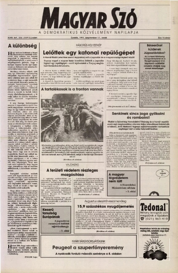 Magyar Szó, 48. évf. 1991. szeptember 17. 256. sz. 1–20. oldal