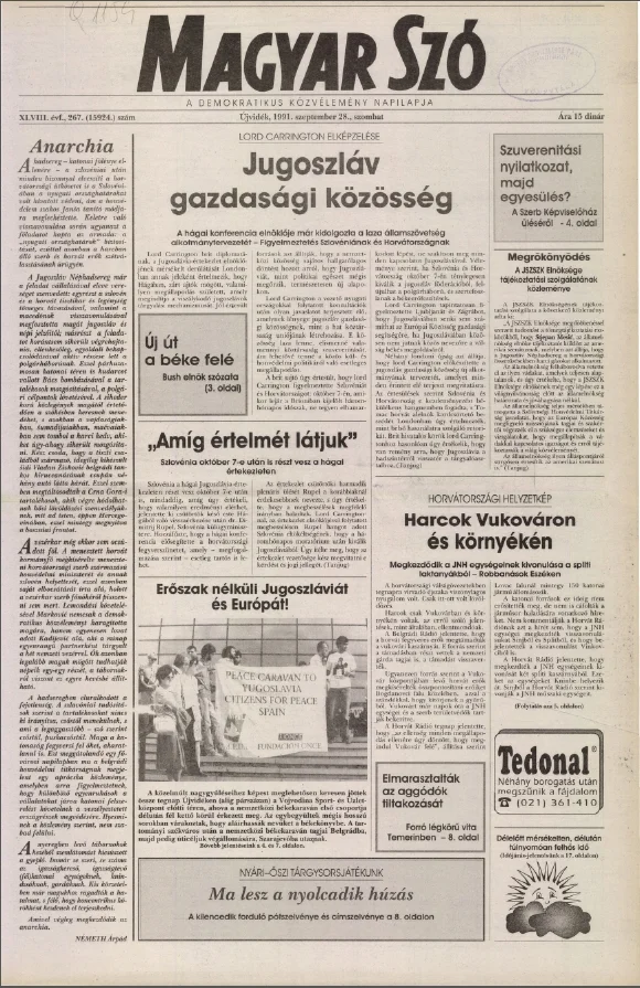Magyar Szó, 48. évf. 1991. szeptember 28. 267. sz. 1–20. oldal