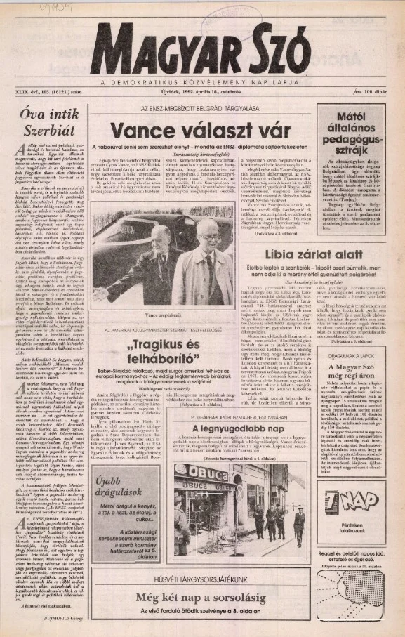 Magyar Szó, 49. évf. 1992. április 16. 105. sz. 1–16. oldal