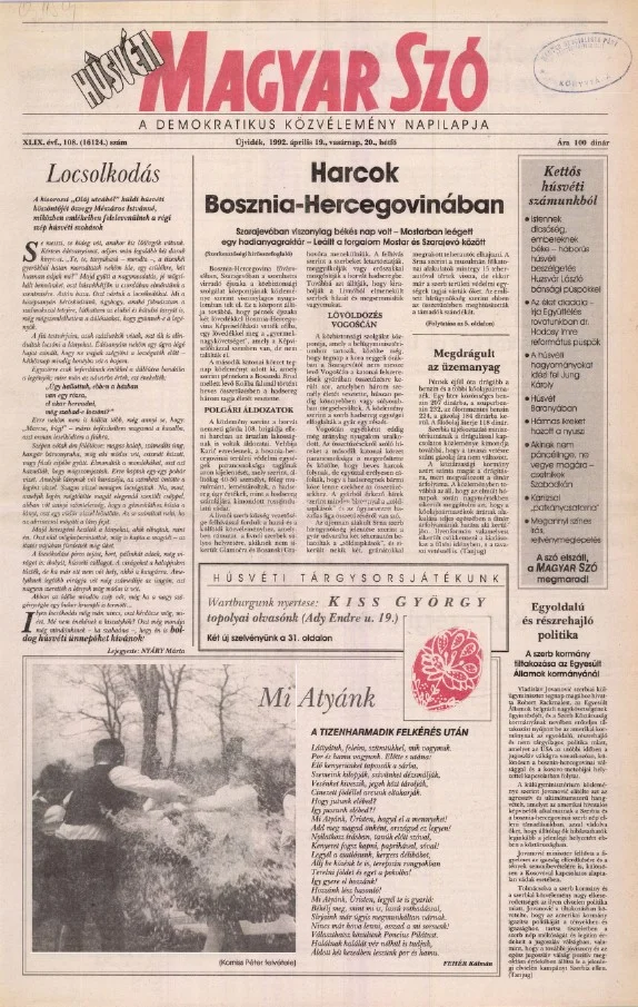 Magyar Szó, 49. évf. 1992. április 19. – 20. 108. sz. 1–32. oldal